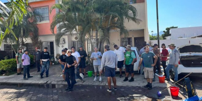 El alcalde Luis Munguía y el director general de SEAPAL Vallarta, Carlos Ruiz, reconocieron la voluntad y compromiso del líder sindical Juan Andrés Aguirre Palacios y de los trabajadores sindicalizados, quienes se han sumado de manera voluntaria a las labores de recuperación en la colonia Parque Las Palmas, afectada por las inundaciones recientes.