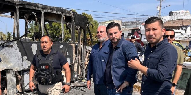 Asimismo, el presidente municipal se trasladó a otros puntos como la colonia 5 de Diciembre, donde continúan los trabajos para retirar unidades incendiadas que obstruían la circulación.