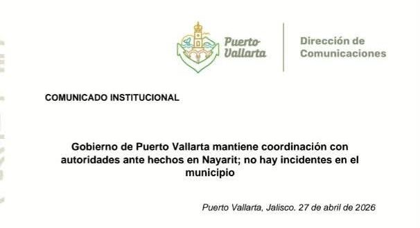 El Gobierno de Puerto Vallarta informó que mantiene una coordinación permanente con autoridades estatales y federales tras los hechos registrados en el vecino estado de Nayarit, con el objetivo de dar seguimiento puntual a la situación y garantizar la seguridad en el municipio.